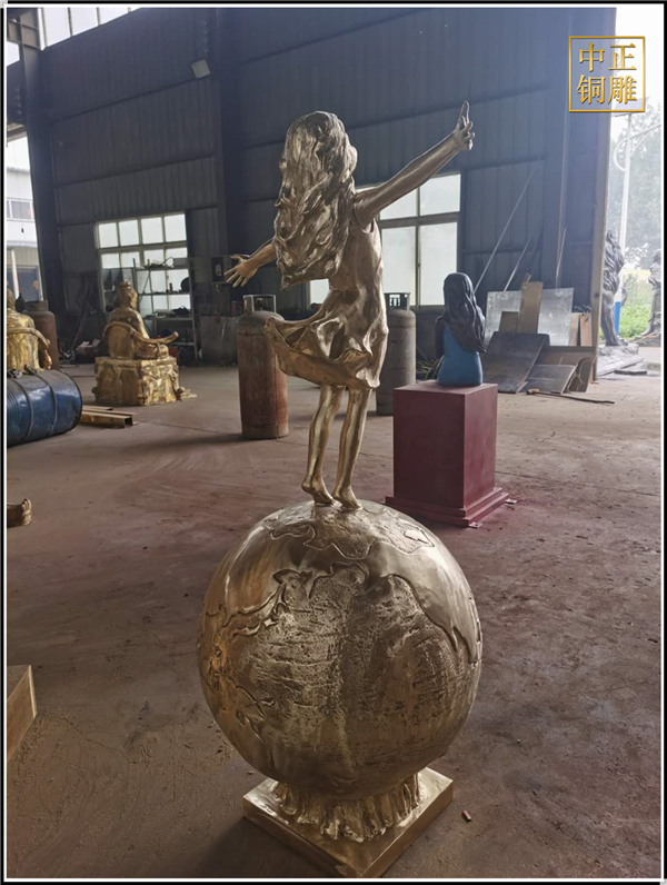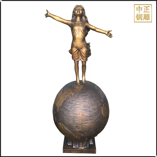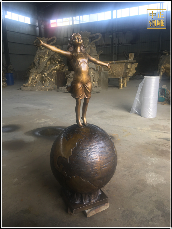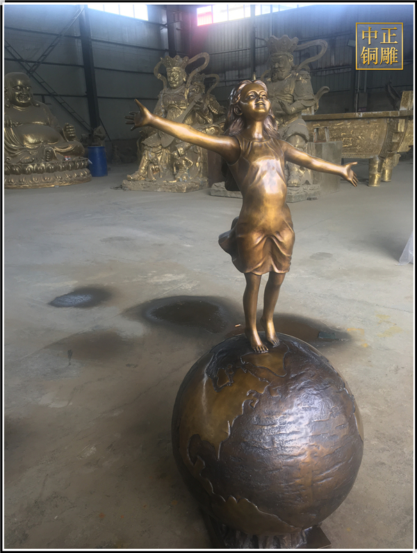 我公司生產(chǎn)的這件高1.5米的站在地球上的小女孩人物雕塑已發(fā)往江蘇省鹽城市,這件站在地球上的小女孩人物銅雕塑是以保護(hù)地球環(huán)境為主題設(shè)計制作的。