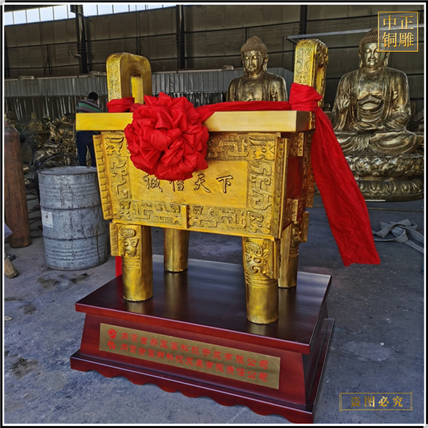 中正銅雕-送禮銅鼎鑄造、送禮銅鼎鑄造廠家、送禮銅鼎鑄造價格,我公司集科研、開發(fā)設(shè)計、普通鑄造、一次性整體澆鑄、精密鑄造于一體。本公司技術(shù)力量雄厚,設(shè)備,不但重視中國青銅器原有的藝術(shù)風(fēng)格,還繼承了文物原有的藝術(shù)品味,在繼承和發(fā)揚(yáng)古老文化的同時,更深一步為新老客戶定身量制各種銅制、鐵制工藝品等產(chǎn)品,曾多次受到寺廟長老和美術(shù)學(xué)院教授的好評。