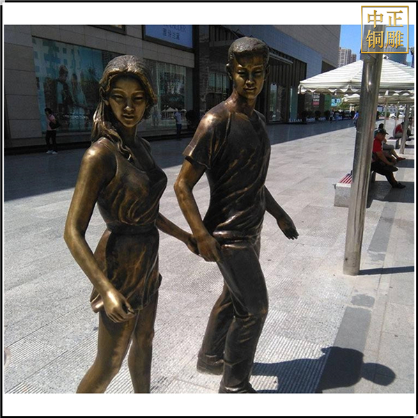 步行街情侶人物銅雕塑