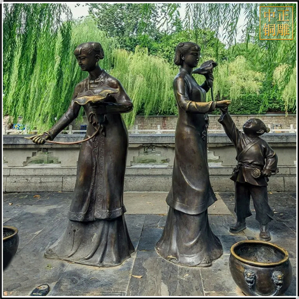 中正銅雕-大型園林景觀人物銅雕塑、大型園林景觀人物銅雕塑價格、大型園林景觀人物銅雕塑廠家,我公司集科研、開發(fā)設(shè)計、普通鑄造、一次性整體澆鑄、精密鑄造于一體。本公司技術(shù)力量雄厚,設(shè)備,不但重視中國青銅器原有的藝術(shù)風(fēng)格,還繼承了文物原有的藝術(shù)品味,在繼承和發(fā)揚古老文化的同時,更深一步為新老客戶定身量制各種銅制、鐵制工藝品等產(chǎn)品,曾多次受到寺廟長老和美術(shù)學(xué)院教授的好評。