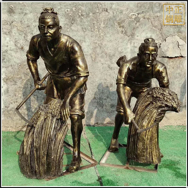 中正銅雕-割麥子人物銅雕塑、割麥子人物銅雕塑價格、割麥子人物銅雕塑廠家,我公司集科研、開發(fā)設(shè)計、普通鑄造、一次性整體澆鑄、精密鑄造于一體。本公司技術(shù)力量雄厚,設(shè)備,不但重視中國青銅器原有的藝術(shù)風格,還繼承了文物原有的藝術(shù)品味,在繼承和發(fā)揚古老文化的同時,更深一步為新老客戶定身量制各種銅制、鐵制工藝品等產(chǎn)品,曾多次受到寺廟長老和美術(shù)學院教授的好評。