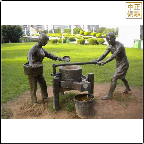 中正銅雕-推石磨民俗人物雕塑、推石磨民俗人物雕塑價格、推石磨民俗人物雕塑廠家,我公司實行現(xiàn)代化企業(yè)管理,成功導(dǎo)入TPS生產(chǎn)管理系統(tǒng),形成集塑制泥塑模型、泥稿后翻制模具、翻制石膏模型、工藝師加工制作、營銷為一體化作業(yè)的生產(chǎn)線,加上先進的銅雕加工設(shè)備,優(yōu)秀的美術(shù)設(shè)計師,雕刻經(jīng)驗豐富的制作人員。