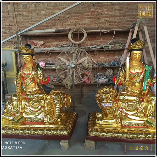 鑄銅鎏金文殊普賢雕像、定制鑄銅鎏金文殊普賢雕像、鑄銅鎏金文殊普賢雕像報價