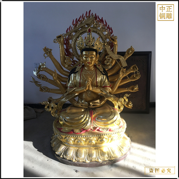 中正銅雕-鑄造千手觀音菩薩佛像、鑄造千手觀音菩薩佛像價格、鑄造千手觀音菩薩佛像廠家,我公司實行現(xiàn)代化企業(yè)管理,成功導入TPS生產(chǎn)管理系統(tǒng),形成集塑制泥塑模型、泥稿后翻制模具、翻制石膏模型、工藝師加工制作、營銷為一體化作業(yè)的生產(chǎn)線,加上先進的銅雕加工設備,優(yōu)秀的美術設計師,雕刻經(jīng)驗豐富的制作人員, 造型精美,精雕細琢,深受客戶的好評。