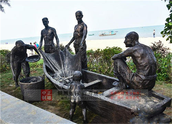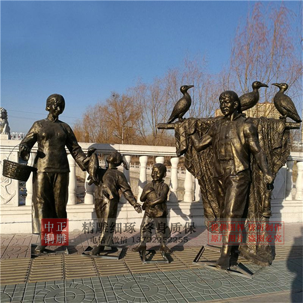 古代捕魚(yú)景觀雕塑傳遞古人的智慧