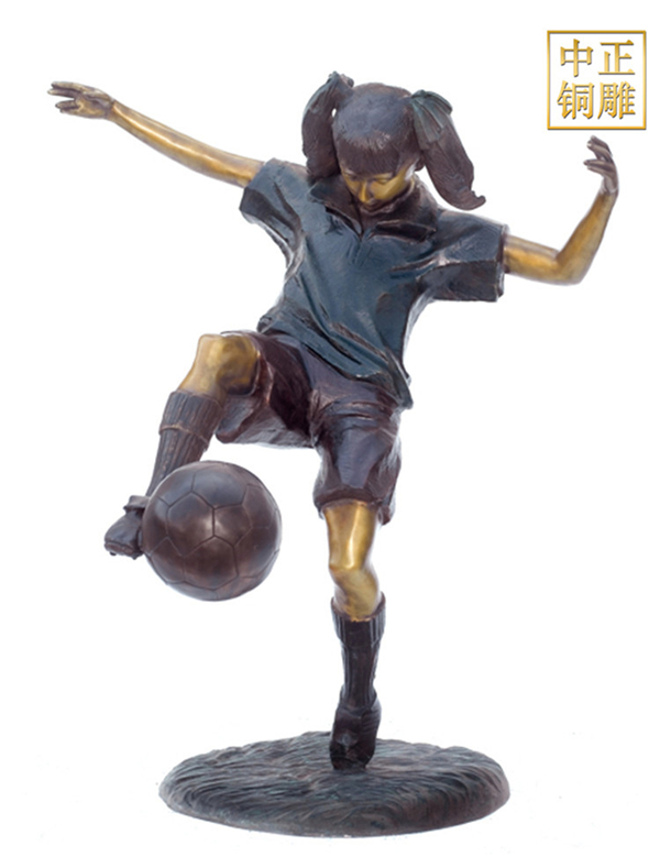 校園中踢足球銅雕塑非常受同學的喜愛,足球是目前全球體育界具有影響力的單項體育運動,有“世界運動”的美譽,它主要是用腳云支配球,也可以用頭胸等部位輔助觸球,而守門員可以在己方禁區(qū)內(nèi)用手或臂觸球,兩個隊伍各11人在同一場地內(nèi)進行攻守。現(xiàn)如今足球運動已成為人們生活中不可缺少的組成部分,一場精彩的足球比賽已成為電視節(jié)目的重要內(nèi)容,可以吸引數(shù)以億計的觀眾。