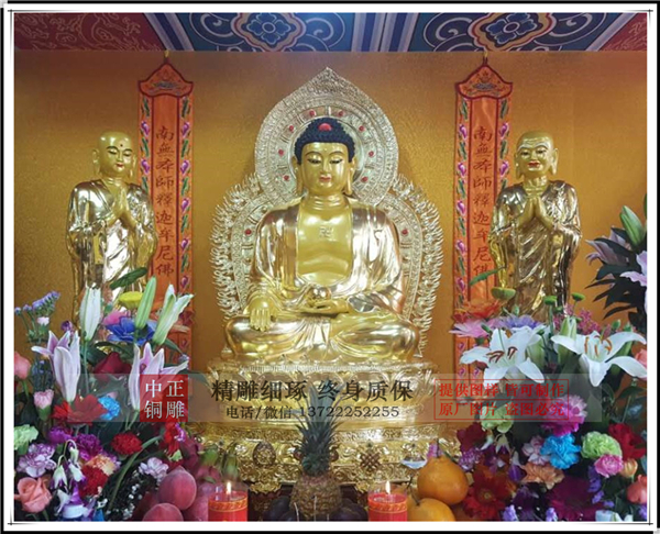 最后就是處理表面工藝了,銅佛像一般都會(huì)進(jìn)行一些表面效果的處理,一個(gè)是讓表面看起來(lái)更漂亮,讓佛像看起來(lái)更真實(shí);另一個(gè)就是掩蓋生產(chǎn)過(guò)程產(chǎn)生的沙眼和焊接等粗糙部位。表面處理工藝主要包含熱著色工藝、化學(xué)著色工藝、貼金箔、彩繪、鍍金、鎏金幾類,還有一些局部處理工藝,例如鑲嵌、噴砂、壓光等,使用較少,暫不做介紹。