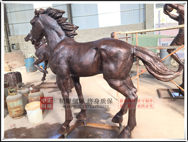 所以馬在雕塑中也是一個(gè)非常多件的素材,銅馬雕塑,身姿矯健,龍馬精神,給人一種振奮向上的力量。在動(dòng)物雕塑中,銅馬擁有很吉祥的寓意,因此在傳統(tǒng)工藝中,銅馬廠(chǎng)家融合了很多吉祥的寓意文化,在銅馬雕塑表面上增加上其他動(dòng)物,更是潛在著很多的吉祥寓意。