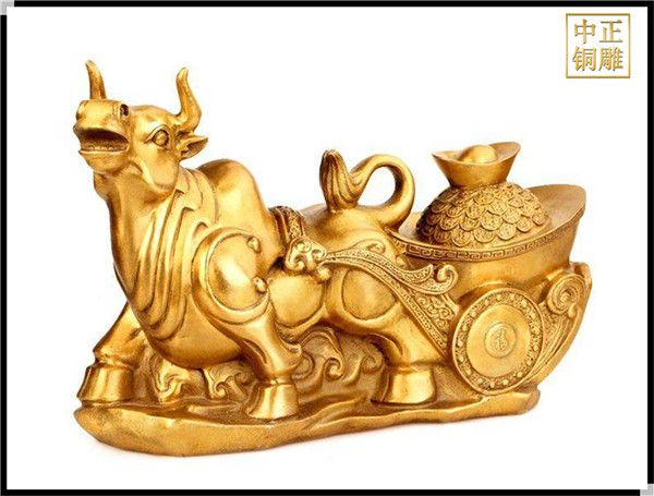 從古至今人們對于牛都是滿懷深情,牛有牛獨有的氣質(zhì),牛也表現(xiàn)了古代社會的男耕女織的生活面貌,人們對牛寄托了豐收的希望;沉鐵牛于河堰的習俗,體現(xiàn)了牛鎮(zhèn)水妖、保平安的避邪功能,正因牛的寓意很好,中國人對于風水有非常的重視,所以非常多的人都喜歡在家中擺放銅牛雕塑擺件,銅牛擺件也是很講究的,但是有些人是跟風的去做,自己并不了解,下面我們來了解小銅牛擺件的含義吧!