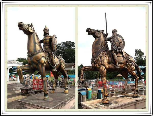 擺放騎馬人物雕塑有哪些寓意呢,很明顯的證明這是以前的古人將軍在從前打仗的時候犧牲了,現(xiàn)代的政府機關(guān)為了紀(jì)念他,為他做的這尊雕像,通常是有武力方面有功績的,試想一個只在內(nèi)政宗教這些文治方面出名的人物,不會為他塑騎馬的像。