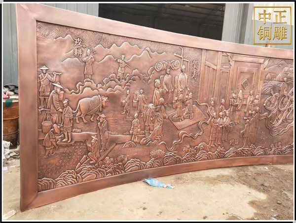 傳統(tǒng)意義上紫銅浮雕也稱純銅浮雕,是用紅銅薄板作為基材經(jīng)過手工鏨制而成,故又稱鍛銅浮雕,銅飾產(chǎn)品因其特有的典雅華貴及幾千年深厚銅文化的積淀而大行其道,鍛銅浮雕則更是風(fēng)行全國,小到幾個平方米的主體浮雕,大到數(shù)百平方米敘事式的銅雕文化長廊,到處洋溢著銅藝文化的氣息,彰顯著銅藝文化的輝煌,而紫銅浮雕可以放在多中場合中,其價值完全不同。