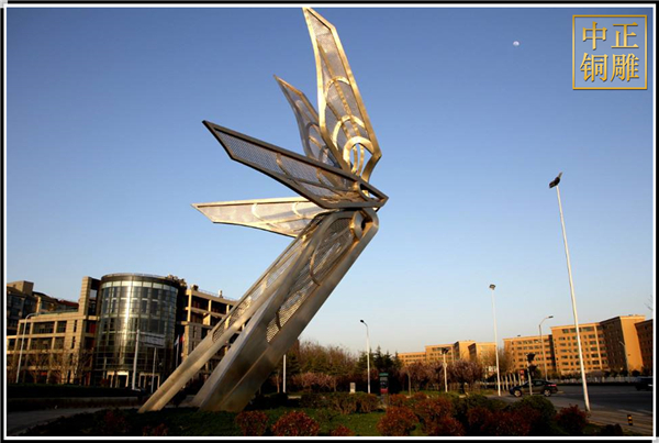 某些城市雕塑作品,由于反映了該城市或地區(qū)某些方面的特點,藝術(shù)上又比較成功,受到不銹鋼雕塑公眾的喜愛,這種現(xiàn)象在造型藝術(shù)中是獨無僅有的。作為城市雕塑景觀的重要組成部分之一的城市雕塑與建筑,綠化共同創(chuàng)造出表明人類良好生活質(zhì)量的生活環(huán)境,如果說,建筑和綠化均有其巨大的實用功能而成為城市景觀中的“硬件”。