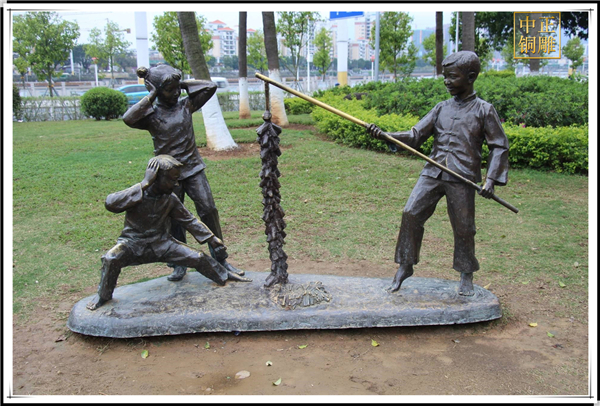 銅雕廠(chǎng)家發(fā)現(xiàn)習(xí)俗性的現(xiàn)象雕塑多以人物記事、社會(huì)場(chǎng)景為主,具有鮮明的人性化和人情味。它的表現(xiàn)手法多以風(fēng)格性為主,在城市街頭設(shè)置一些具有習(xí)俗性的現(xiàn)象雕塑,不只體現(xiàn)了地方的傳統(tǒng)韻味,還吸引著交游的人們寄托無(wú)限的情思。
