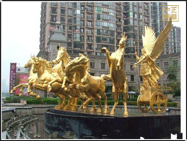 馬在中國(guó)是吉祥的象征,像是馬到成功、馬上封侯、萬(wàn)馬奔騰、馬上有錢(qián)這些美好的成語(yǔ)寓意都是跟馬有關(guān)的,以馬為創(chuàng)作題材的雕塑作品,在中國(guó)也很非常常見(jiàn)和受人們喜愛(ài)的,銅馬雕塑的鑄造材質(zhì)有很多種,今天我們主要來(lái)欣賞一下鑄銅馬雕塑。