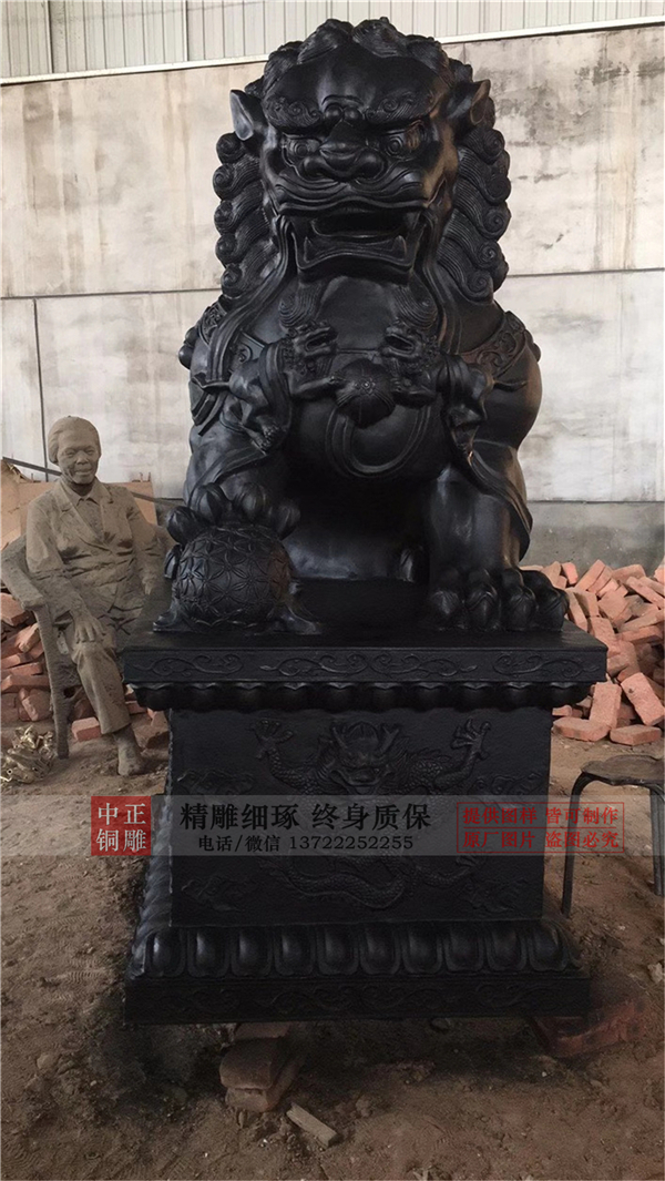 門的銅獅子的擺放是有規(guī)矩的。一般來說,都是一雄一雌,成雙成對的,而且一般都是左雄右雌,符合中國傳統(tǒng)男左女右的陰陽哲學(xué)。放在門口左側(cè)的雄獅一般都雕成右前爪玩弄繡球或者兩前爪之間方一個繡球;門口右側(cè)雌獅則雕成左前爪撫摸幼獅或者兩前爪之間臥一幼獅。 右前爪玩弄繡球的雄獅,左前爪撫摸幼獅的雌獅。石獅子在大門兩側(cè)的擺放都是以人從大門里出來的方向為參照的。當(dāng)人從大門里出來時,雄獅應(yīng)該在人的左側(cè),而雌獅則是在人的右側(cè)。而從門外進(jìn)入時,則剛好相反。