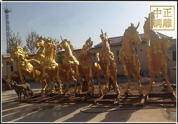 動物雕塑是造型藝術的一種。又稱動物雕刻,是雕、刻、塑三種創(chuàng)制方法的總稱。指用各種可塑材料(如石膏、樹脂、粘土等)或可雕、可刻的硬質材料(如木材、石頭、金屬、玉塊、瑪瑙等),創(chuàng)造出具有一定空間的可視、可觸的藝術形象。動物的形象大為豐富,數量繁多,獅子、麒麟、龍龜、牛、馬等各種不同動物的形象。雕塑手法形象寫實、生動。今天我們著重來說一下銅馬雕塑。
