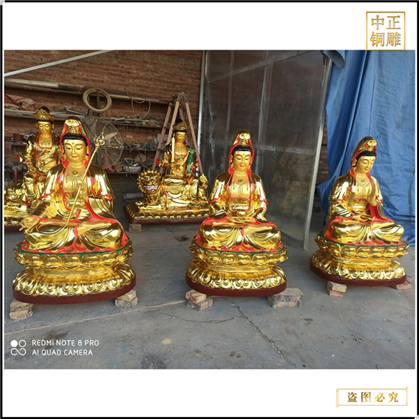 第六,表面工藝處理:一般佛像都是需要進(jìn)行表面處理工藝的,一個(gè)是讓表面看上去更美觀,讓佛像看上去更真實(shí);另一個(gè)就是掩蓋生產(chǎn)過(guò)程產(chǎn)生的沙眼和焊接等粗糙部位。表面處理工藝主要包含熱著色工藝、貼金箔、彩繪、鍍金、鎏金等幾類,還有一些局部處理工藝等等。