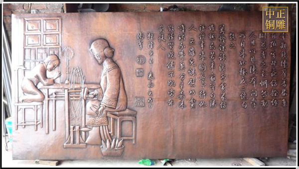 銅浮雕能夠承載更多的內(nèi)容,它打破了傳統(tǒng)雕塑內(nèi)容單一的缺點,可以像繪畫一樣繪制出豐富的內(nèi)容,能夠通過銅浮雕將事件、繪畫、文化等濃縮到整畫中去,從而形成一種全新的藝術(shù)形式.中正銅雕-銅浮雕定做、銅浮雕定做價格、銅浮雕定做廠家,我公司集科研、開發(fā)設計、普通鑄造、一次性整體澆鑄、精密鑄造于一體。本公司技術(shù)力量雄厚,設備,不但重視中國青銅器原有的藝術(shù)風格,還繼承了文物原有的藝術(shù)品味,在繼承和發(fā)揚古老文化的同時,更深一步為新老客戶定身量制各種銅制、鐵制工藝品等產(chǎn)品,曾多次受到寺廟長老和美術(shù)學院教授的好評。