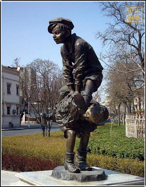 中正銅雕-兩個小男孩跳背人物銅雕塑、兩個小男孩跳背人物銅雕塑價格、兩個小男孩跳背人物銅雕塑廠家,本公司打造了一支強有力的管理隊伍和創(chuàng)新團隊,在國內(nèi)同行中成為佼佼者。加強與國內(nèi)知名專家的合作,提升公司的實力,打造公司文化品牌,提升公司的品牌價值及創(chuàng)造力,為社會創(chuàng)作更多有品位的雕塑作品。無論從黃銅鑄造,錫青銅鑄造都能熟練掌握其材料比例和配方。能使鑄件抗氧化,防腐蝕性,防酸,防堿及使鑄件外力沖擊而不折,能熟練鑄造銅鐘,銅鼎,編鐘,銅鼓等高難度的產(chǎn)品。
