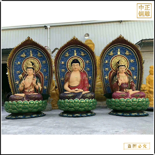 高一米西方三圣貼金彩繪像、高一米西方三圣貼金彩繪像定制、高一米西方三圣貼金彩繪像價(jià)格