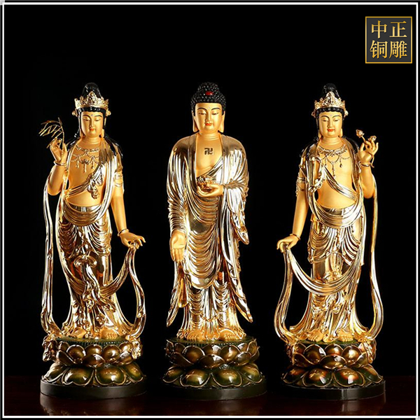 西方三圣又稱阿彌陀三尊,中間是阿彌陀佛,左邊大勢(shì)至菩薩,右邊為觀世音菩薩組成。西方三圣乃是凈土宗專修對(duì)象。 中正銅雕-西方三圣擺件、西方三圣擺件價(jià)格、西方三圣擺件廠家,我廠是一家專業(yè)生產(chǎn)人物雕塑的廠家,其質(zhì)量和品質(zhì)都非??煽?,有需要的客戶歡迎前來訂購(gòu)。