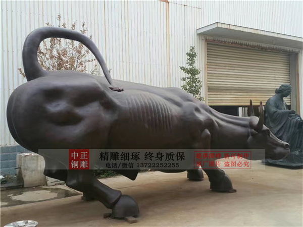 一頭充滿力量的黃牛四蹄抓地,頭向前伸并彎向制地下做巨力拉牽狀,它的后面是一連根拔起的粗壯的枯樹根,象征著開拓者們摧枯拉朽的英雄氣概。作品以較為準(zhǔn)確的形象概括了“開荒”這一艱巨事業(yè)的偉大意義,從而頌揚(yáng)了特區(qū)建設(shè)者吃苦耐勞、勇往直前的精神。中正銅雕-河北銅牛雕塑廠家,河北銅牛雕塑,河北銅牛雕塑制作,我公司集科研、開發(fā)設(shè)計(jì)、普通鑄造、一次性整體澆鑄、精密鑄造于一體。本公司技術(shù)力量雄厚,設(shè)備,不但重視中國(guó)青銅器原有的藝術(shù)風(fēng)格,還繼承了文物原有的藝術(shù)品味,在繼承和發(fā)揚(yáng)古老文化的同時(shí),更深一步為新老客戶定身量制各種銅制、鐵制工藝品等產(chǎn)品,曾多次受到寺廟長(zhǎng)老和美術(shù)學(xué)院教授的好評(píng)。