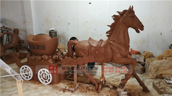 縱觀中國古代的雕塑馬,在不同的朝代,雕塑馬的造型也不盡相同。然而,就算處在同一個(gè)朝代,不同的雕塑家所塑造的馬也不一樣,論其原因,就在于每個(gè)人腦海中對于馬的意象造型都是不一樣的。人具有主觀能動(dòng)性,在這個(gè)主觀能動(dòng)的支配下,意識(shí)對馬這個(gè)客體的反應(yīng)也是不同的,譬如,有的雕塑家手下的馬是仰天長嘯的瀟灑,而有的則是體型嬌小,馴服聽命。中正銅雕-定制銅馬雕塑廠,定制銅馬雕塑廠家,定制大型銅馬雕塑廠,我公司實(shí)行現(xiàn)代化企業(yè)管理,成功導(dǎo)入TPS生產(chǎn)管理系統(tǒng),形成集塑制泥塑模型、泥稿后翻制模具、翻制石膏模型、工藝師加工制作、營銷為一體化作業(yè)的生產(chǎn)線,加上先進(jìn)的銅雕加工設(shè)備,優(yōu)秀的美術(shù)設(shè)計(jì)師,雕刻經(jīng)驗(yàn)豐富的制作人員, 造型精美,精雕細(xì)琢,深受客戶的好評。