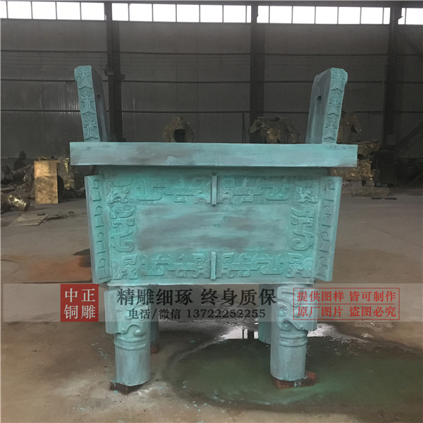 眾所周知,相比于純銅,青銅的硬度非常高(青銅是銅和錫或鉛或砷等元素的合金),古人在制作一些小而薄的青銅器時(shí),可以采用錘揲、鏨刻的方法來成型并增加紋飾,但是如果想要制作出器型大、器壁厚的銅器,就無法錘揲成型,也無法直接在器身上直接雕刻花紋了,必須通過鑄造的方法來同時(shí)完成成型和裝飾。中正銅雕-定制青銅寶鼎,加工定制青銅寶鼎,批發(fā)定制青銅寶鼎,我廠成立于2014年.我公司是唐縣銅雕的知名企業(yè),主要以各種大型銅雕鑄造加工于一體.主要產(chǎn)品有,寺廟佛像、香爐、銅鐘、城市雕塑、動(dòng)物雕塑、偉人雕塑、西方人物、銅浮雕等,品種齊全,價(jià)格合理。
