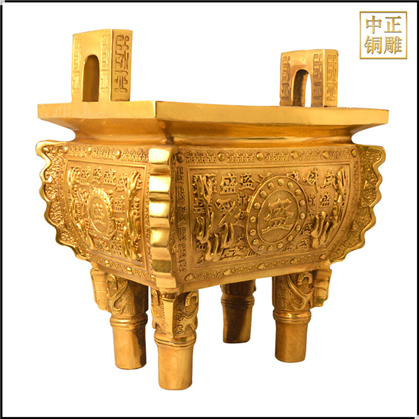 銅鼎做為青銅器中的重器,一直是人們心中認為的重要的青銅器作品,它有一種歷史的份量,這無形中就表達出了一種厚重之感。尤其是在現(xiàn)代企業(yè)雕塑中,應(yīng)用也是很廣泛。參觀過歷史博物館的人,總會被一些大小不同,形制相異的青銅器所吸引,這些青銅器多數(shù)是由地下發(fā)掘出來的,有些出自墓葬,有些出自遺址或窖藏,其中少數(shù)是傳世品。這些青銅器物不僅僅是歷史的產(chǎn)物,更是體現(xiàn)中國文化的一部分。中正銅雕-聚寶方鼎鑄造、聚寶方鼎鑄造價格、聚寶方鼎鑄造廠家,我廠是一家以設(shè)計、制作、安裝為一體的發(fā)展型企業(yè)。公司坐落在中國銅雕之鄉(xiāng)---河北唐縣,成立于1984年。公司自成立以來,以優(yōu)質(zhì)的雕塑工藝,優(yōu)異的性價比,一體化的銷售網(wǎng)絡(luò),高效、完善的售后服務(wù),飛速發(fā)展。成為了擁有設(shè)計、銷售、生產(chǎn)、安裝、維護為一體的銅雕塑制作商。