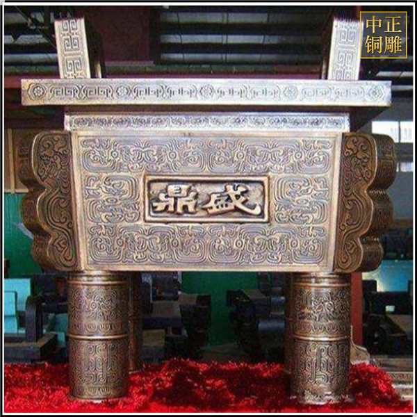 圓鼎顧名思義就是三根立腿,兩只提耳,是用來調(diào)和各種味料的寶器。原本是古代的飪食器,后來變?yōu)榻y(tǒng)治階級政治權(quán)利的重要象征,視為鎮(zhèn)國之寶和傳國之寶,也是“明貴賤,別上下”等級制的標(biāo)志。但是現(xiàn)在的圓鼎大多都是仿造古代的圓鼎由銅鼎鑄造廠家制作而成的。中正銅雕-四羊方尊銅鼎、四羊方尊銅鼎價格、四羊方尊銅鼎廠家,我廠是一家以設(shè)計、制作、安裝為一體的發(fā)展型企業(yè)。公司坐落在中國銅雕之鄉(xiāng)---河北唐縣,成立于1984年。公司自成立以來,以優(yōu)質(zhì)的雕塑工藝,優(yōu)異的性價比,一體化的銷售網(wǎng)絡(luò),高效、完善的售后服務(wù),飛速發(fā)展。成為了擁有設(shè)計、銷售、生產(chǎn)、安裝、維護為一體的銅雕塑制作商。
