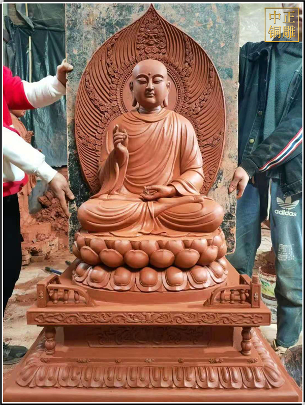 這件1.6米高的地藏王銅像,現(xiàn)已完成發(fā)貨安裝,從泥塑制作到上色歷時(shí)兩個(gè)月的時(shí)間,據(jù)《地藏菩薩本愿經(jīng)》載:其為釋迦既滅后,彌勒未生前,眾生賴以救苦,自誓必盡度六道眾生,始愿成佛的菩薩。相傳其顯靈說(shuō)法的道場(chǎng)在安徽九華山。作為胎藏界地藏院的菩薩,形象為身披袈裟,掛瓔珞、戴寶冠,手持寶珠及錫杖,呈菩薩或沙門狀。九華山月身寶殿內(nèi)設(shè)七級(jí)木質(zhì)寶塔,每層佛龕八座,供奉地藏全身從像。大足177號(hào)地藏變相窟塑地藏菩薩中坐,左右各二化身像,造型古樸渾厚,線條洗練,突出了憨厚慈悲的性格特征。敦煌莫高窟五代、宋代窟的甬道頂部均繪有地藏像,體態(tài)豐滿,衣飾華麗,色彩濃艷,形式多變。唐縣中正銅雕工藝品廠是鑄銅雕塑的廠家。擁有設(shè)計(jì)師和雕塑團(tuán)隊(duì),引進(jìn)的鑄造技術(shù),開發(fā)出一系列的銅制工藝品。